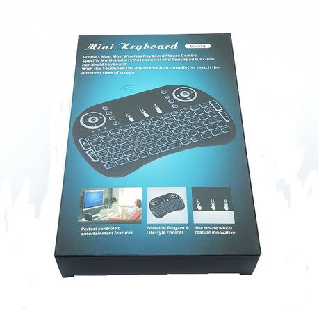 1 x Multi-function wi-fi backlit multimedia mini keyboard, 1 x Wi-Fi receiver, 1 x Rechargeable battery, 1 x USB charging cable & 1 x User manual