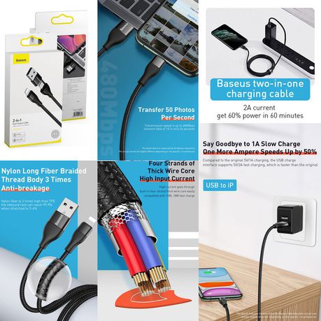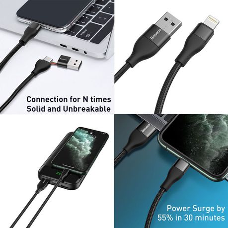 Baseus 2in1 Dual Output USB Type-C/Type-A to Lightning PD Cable