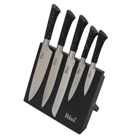 The Bass 5 piece Knife Set adds a touch of class to any kitchen. The stainless steel, anti-bacterial and stain utensils come with a handy magnetised block board making the knives easily accessible on a countertop.