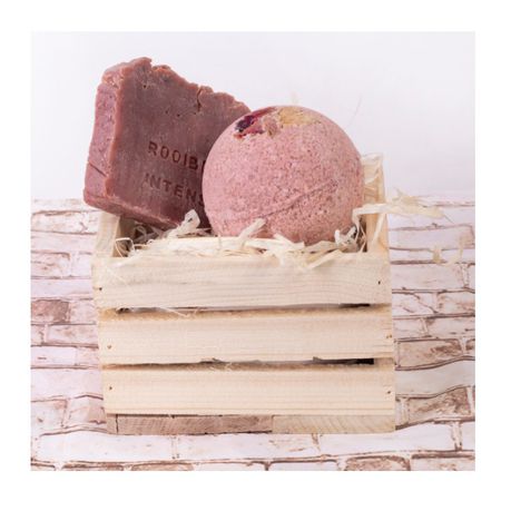 Material: Soap contains Kaolin clay, rooibos concentrate, Shea butter, olive oil, vanilla rose fragrance Bath bomb contains coconut oil No chemicals nor preservatives Hypoallergenic