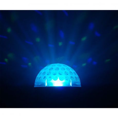 This music-controlled multicolour LED Magic Jelly DJ Ball creates an amazing double lighteffect. Due to the LED Technology, 82 strong beams and a glowing transparent crystal globe, a color changing ball is produced while the globe turns along with the rest of the effect. Sound or auto controlable. Comes with strong plastic housing. Suitable for discos, bars, clubs etc.