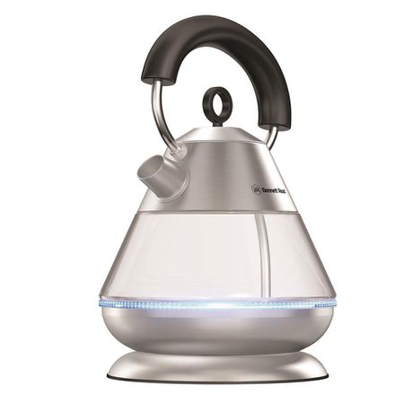 Clearly chic & undeniably unique: With a powerful 2200W concealed heat element, together with stylish stainless steel accents & bright blue illuminated LED lights, this beautifully crafted pyramid glass kettle will be the clear choice for your kitchen! Elegantly designed: Featuring a 1.5L capacity glass body & stylish stainless steel accents this pyramid glass kettle was certainly created to make that bold statement! Cordless convenience: Powerful 2200W concealed heat element with 360° swivel base with integrated cord storage that allows for hassle-free filling, pouring and cleaning. Illuminating power: Designed with heat-resistant glass & bright blue LED’s around the brim that illuminate while the water is heating up. Safety is key: Advanced Strix Technology, a sturdy grip handle, boil-dry protection & auto shut- off feature, all combine for total peace of mind.