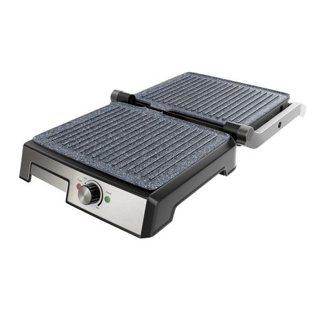 The Bennett Read Grill Boss is no ordinary griller. It’s an all-in-one sandwich press, grill & electric barbeque system, with healthy oil-draining design. Packed with features to easily prepare scrumptious grilled sandwiches & paninis, sizzling steak, seared chicken, fish, boerewors & chops. It even bends over backwards to make your life easier! Double your surface area by opening the Bennett Read Grill Boss completely, creating 2 flat griddles for searing steaks, succulent chicken breasts or delicious boerewors. Convenient, easy-to-use, large drip tray catches all the oil run-off so you can enjoy tasty, healthier meals. Superior-quality, durable, non-stick GraniteTech coating for effortless cooking & cleaning. The Bennett Read Grill Boss grills from both sides when closed, cooking in half the time! Adjustable temperature dial for controlled cooking. Plus centralized floating hinge for evenly spread pressure & heat distribution when closed.
