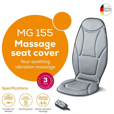 For use at home or in the car With car adapter for use in the car 5 vibration motors 2 intensity levels 3 individually selectable vibration massage areas Selectable heat function - with vibration massage or separate Easy operation with manual control switch Attached using flexible fixing bands Can be used on all seats with sufficient seat depth and back rest