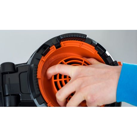 - Swap between supplied blower and vacuum tubes to change from blower to vac