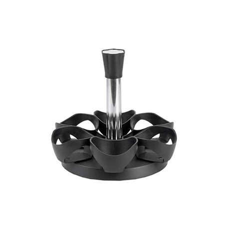Spicing up the kitchen with its contemporary style, this compact carousel spice rack offers crystal clear, heavy-duty glass containers to keep your spices and herbs super fresh. The centre knob rotates the base making it easy to select the spices you need.