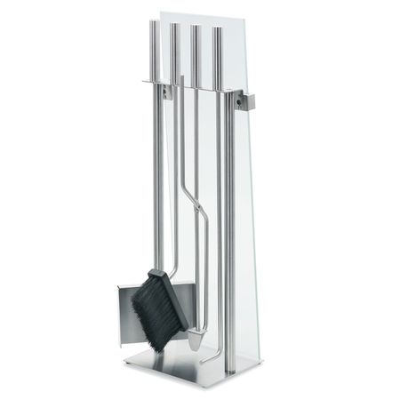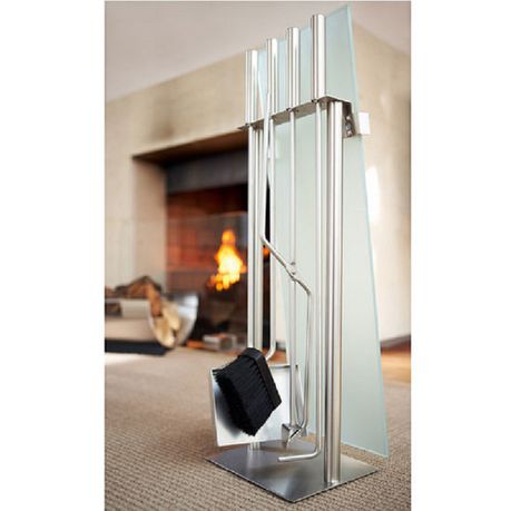 - Includes a brush, shovel, tongs and a poker subtly hidden behind frosted glass