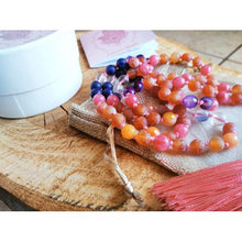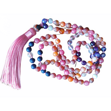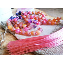 Made with semi-precious beads, used for meditation or as a reminder to center yourself and your thoughts, to offer guidance and direction and bring positivity, love, health and prosperity. Each aspect of these Malas has a meaning and a purpose, from the number of beads used, to the type of bead used as well as the colour of the beads and the tassel that keeps it all together.