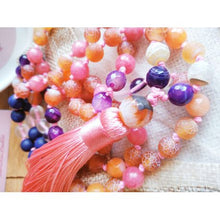 Consists of 108 beads ( Mixed agate, salmon jade)1 Guru bead (Faceted moonstone), 1 hidden bead, and a tassel (pink). Just like a four-leaf clover is considered a symbol of good fortune, is thought to have protective, lucky-charm energy. Believed to encourage its keeper to take on a more positive attitude, helping to bring a more courageous, self-motivating and hopeful personality(see inside pack for more information).
