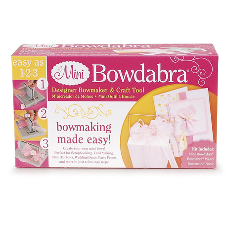 The Mini Bowdabra is an easy-to-use device that lets even novices create most captivating mini bows in a matter of few minutes. It is almost like having an extra pair of magical hands that let you create professional-looking mini bows for smaller projects which you can use for hair bows, gift wrapping, wedding decor, party favors, decorations for candles, corsages, card making, scrap-booking, designer crafts and much more.