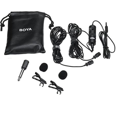 The BOYA BYM1DM is a Dual Lavalier Universal Microphone, with a single 1/8inch stereo connector, it can be used with smartphones, DSLR cameras, camcorders, audio recorders, PC and other recording deceives.