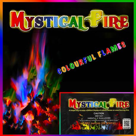 Mystical fire consists of 6 x individual foil packets containing 25 grams of pyrotechnic composition: 65% cupric sulfate, 23% cupric chloride, and 12% polyvinyl chloride