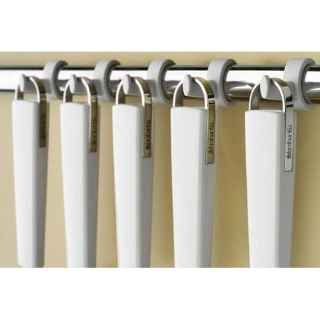 Plastic grip with stainless steel hanging loop. Easy to clean.