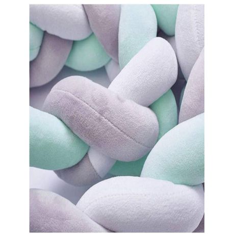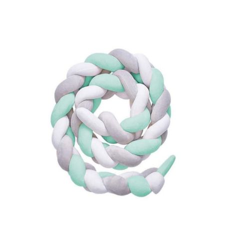 1x Braided Baby Cot Crib Bumper - Grey, Mint Green & white
