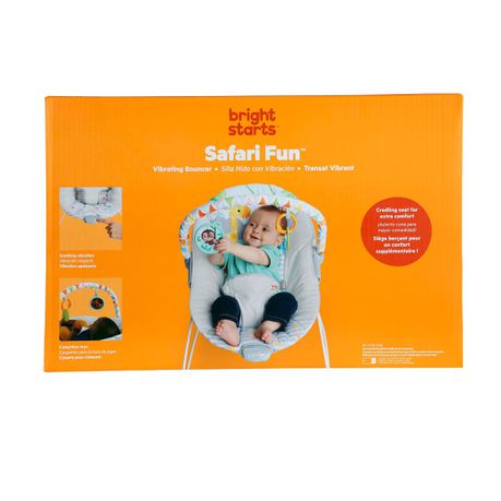 Journey Into A Jungle Of Comfort And Cuddles With This Bright Starts Baby Seat. From Safari Adventures To Afternoon Snuggles, The Bouncy Seat Helps Your Wild One Relax With Soothing Motions And Vibrations. Your Baby Will Switch From Cranky To Cooing As He Kicks And Reaches For The 2 Toys Hanging Above. Baby Is Safe And Secure With The 3 Point Harness And Nonslip Feet. With Your Little Newborn Monkey In His New Favorite Baby Bouncer, You Can Take A Seat Too With Baby In View.