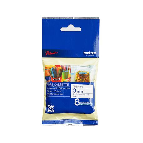 Brother M-K223 Blue on White Non-Laminate Tape 9mm. For use with the Brother PT-M95, PT-M95AD, PT-90, PT-80.