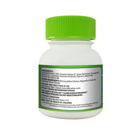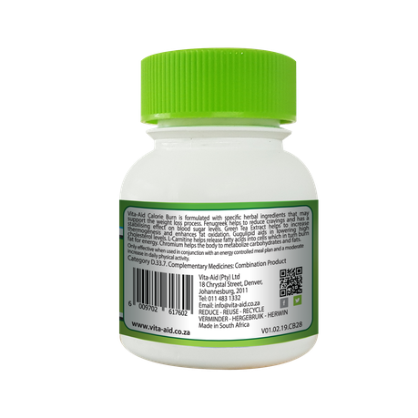 Vita-Aid calorie burn has been formulated as a dietary supplement to assist in a healthy lifestyle. Vita-Aid calorie burn is formulated with specific herbal ingredients that may support the weight loss process. Fenugreek helps to reduce cravings and has a stabilizing effect on blood glucose levels. Gugulipid aids in lowering high cholesterol levels.