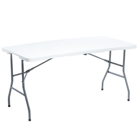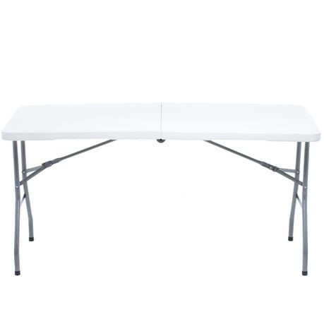 A table on the go can make any outdoor experience so much more convenient and that is what you get with the Campground plastic folding table. A center folding table for indoor or outdoor use, great for events, parties, and holiday gatherings.