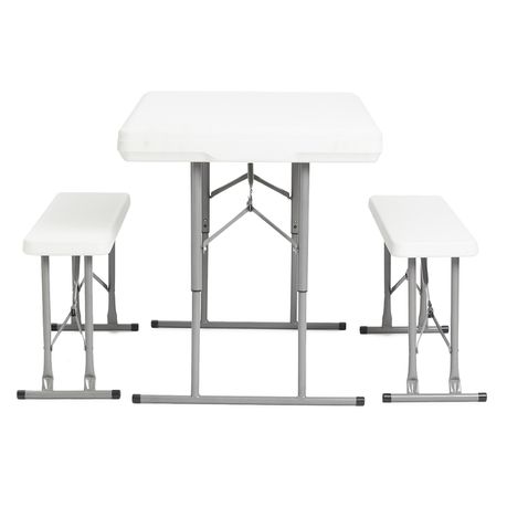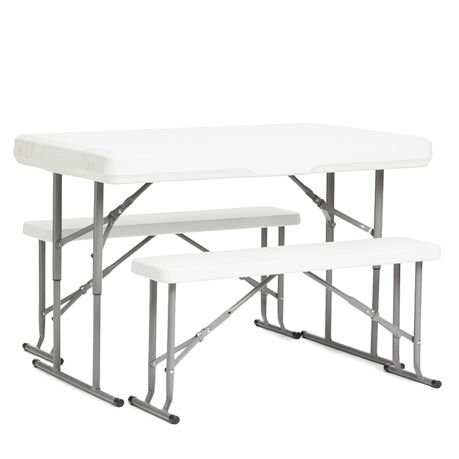 Make your next picnic a breeze with this Campground Picnic Table Set. Perfect for camping with a white tabletop finish, this set is made from sturdy steel and plastic ready to accompany you and your family on the best outdoor adventures