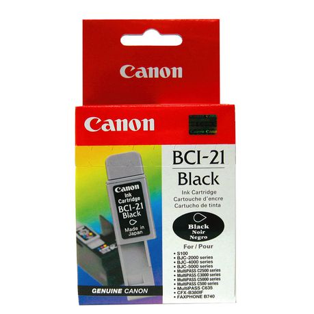 Genuine Canon BCI-21 Black ink cartridge in retail box.