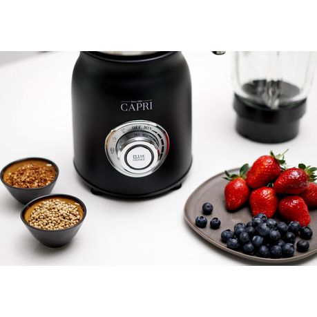The Capri Nutri Blender & Grinder is a must have for any aspiring home chef! Easy to use and easy to clean, this device will streamline your cooking experience. The strong 1.5 litre jar, sturdy with secure clips and steady base make this blender incredibly safe. With its powerful 1000W motor, and heavy-duty sawtooth blades you will be able to chop, mix, blend, liquify and crush with ease!