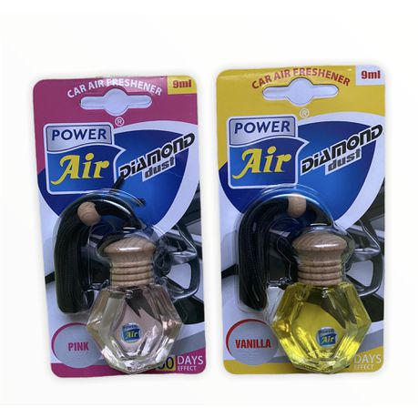 Hanging car air freshener-Diamond shape premium glass bottle with wooden lid filled with perfume. Hang it instantly eliminate odour and deodorize your car, Fresh, trendy and innovative, the Power Air air freshener range was created using the latest in air freshener technology and natural perfumes to provide refreshing bursts of pleasant fragrance that lasts longer.