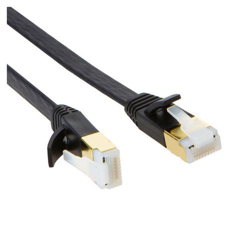 ULTRA FLAT: CAT-7 10 Gigabit Ultra Flat Ethernet cable, slim and flexible, easy to fit into the tightest spaces 10 GBPS DATA SPEED: Compliant with ANSI/TIA/EIA 568-B, 2-1, Up to 10 Gbps Speed and Meets all Proposed CAT-7 Requirements; Supports: 10GBASE-T; 1000 BASE-T; 100 BASE-T; 10 BASE-T PROTECTION FROM INTERFERENCE: Shielded Twisted Pair and RJ45 Connectors to Protect Against EMI/RFI Interference HIGH QUALITY SHIELDED RJ45 CONNECTORS: 50 Micron Gold plated Contact Pins in each Shielded RJ45 Connector GREAT NETWORKING COMPATIBILITY: Backward Compatible with Cat-5e / Cat-6 / Cat-6a Ethernet Cables