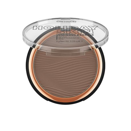 Extend your summer tan, create soft contours or revitalize a tired complexion? Here you go – with the Holiday Skin Luminous Bronzing Powder. The silky, waterproof powder provides a soft tan with a subtle holiday glow and nourishes the skin thanks to the contained macadamia oil. The bronzer is available in two shades.