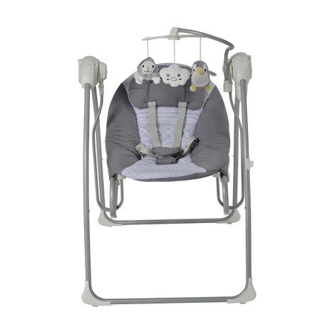 The Chelino Starlite is a baby Swing and rocker. Easy operation with 3 swing speeds and 3 time settings 10, 20 and 30min. Volume control and music are selectable. Operate with batteries 4 “C” (not included) or AC/DC adapter. Can be separated into stationary mode and for rocking. 3 position reclining seat. Comfortable pillow. Detachable toy bar with mobile (hand rotate)