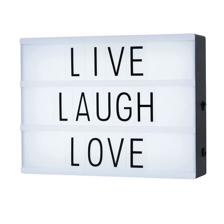 A4 Cinematic Light Box - Create your own messages by sliding in the supplied letters, numbers & emojis. Ideal for desktop, cabinet, window or wall. Bright white LED Backlight. Perfect for use at Birthdays, Weddings, Parties, Romantic Messages, Window Display, Business Sign, or just for fun. A4 ( 22cm x 30cm). Requires AA Batteries (NOT SUPPLIED)