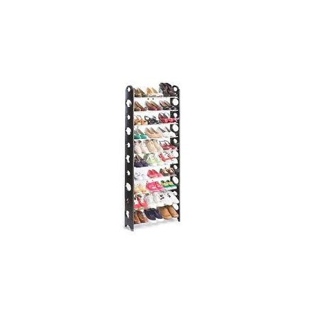 - 10 Tier with a capacity to hold up to 30 pairs of shoes dependent on the size and width of the shoes.