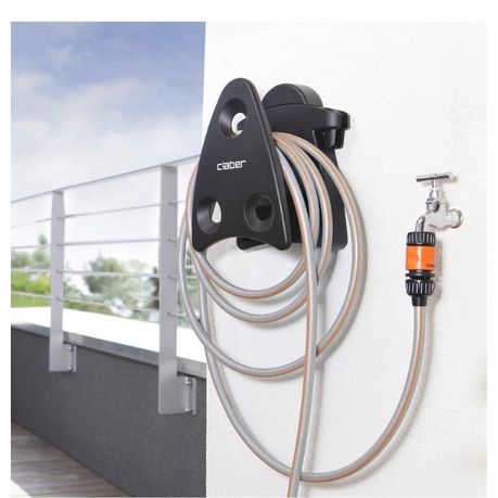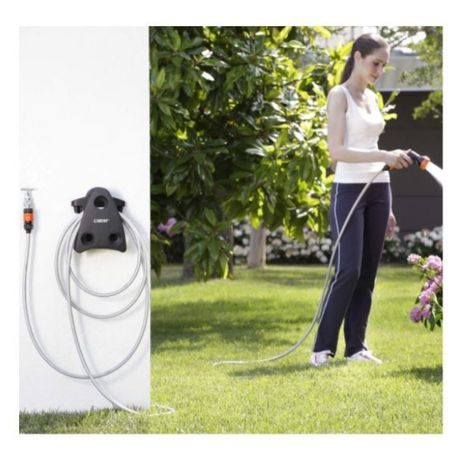 Compact hose reel with accessories, ready-to-use. Provided with a retractable handle for ease of transport and placement. Wall-mounted. Easy-to-store, thanks to its conveniently located recesses, designed to house couplings, tap connector and pistol. Includes 10 metres of Ø 9-13 mm hose, 1 x 3/4” (20-27 mm) connector with 1/2” (15-21 mm) reducer, 2 x automatic couplings, 1 x shower pistol.