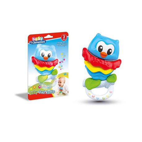 A fun and friendly rattle shaped like an owl with lots of mechanical activities and soft plastic parts, perfect for biting!