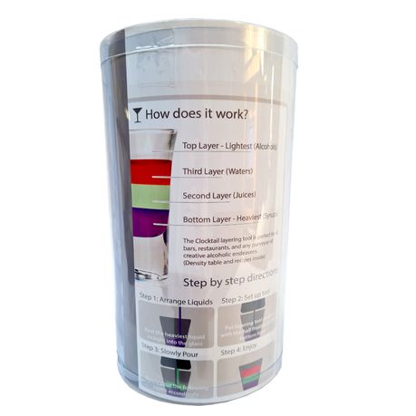 The Clocktail layering tool will make you look like a professional bartender by helping you flawlessly layer from cocktails and shots, to hot and non-alcoholic beverages.