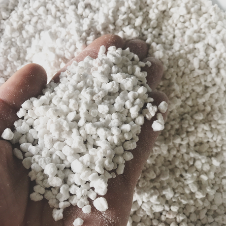 Perlite has many uses and is often used in horticulture. It is a hard highly porous material made by super-heating volcanic glass. It is mixed into the soil to help improve aeration and drainage. Perlite is rough so water and nutrients gather in its crevices, making moisture and nutrients more available to the plant. Perlite is a naturally occurring siliceous rock and as such, is not toxic.