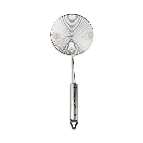 Whether you're boiling a pot of ravioli or frying homemade French fries, this wire skimmer’s long handle keeps your hands safe from hot liquids, and allows the food to drain quickly before being transferred into a serving dish.