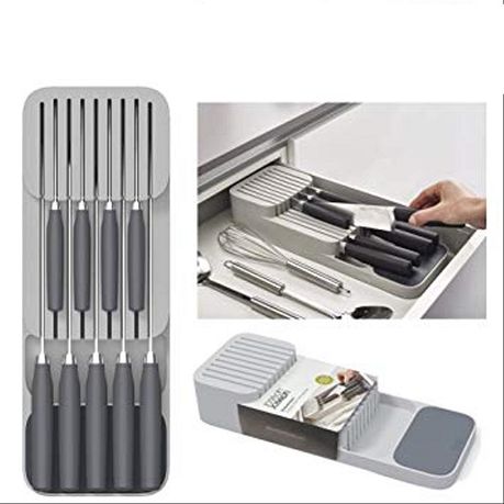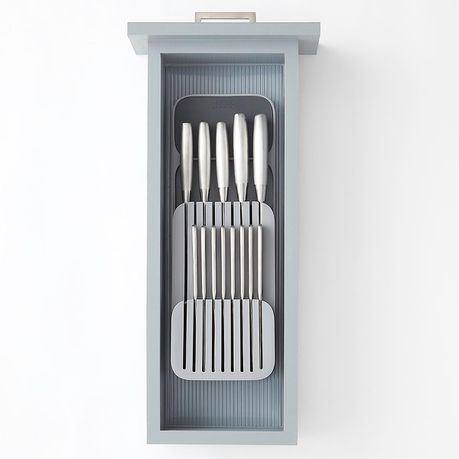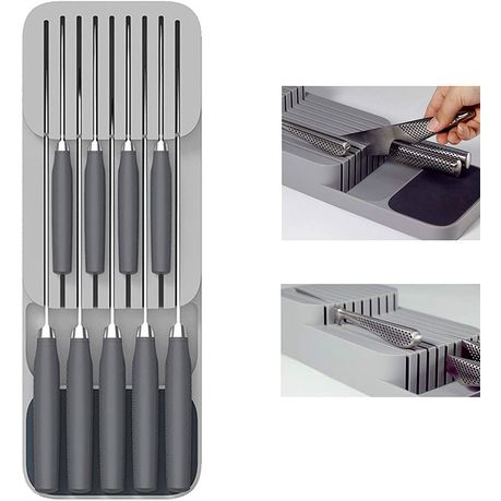 Store your sharp knives safely in your cutlery drawer with this compact knife organiser, it has 2-tiers for easy access and can hold up to nine knives of different blade lengths. Non-slip feet