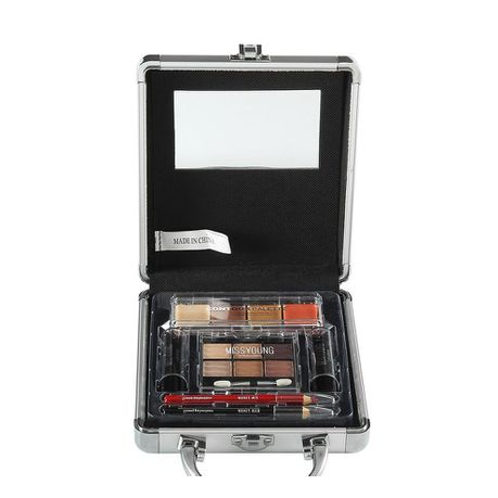 This compact metal Makeup case offers you 16 different products in one compact case.