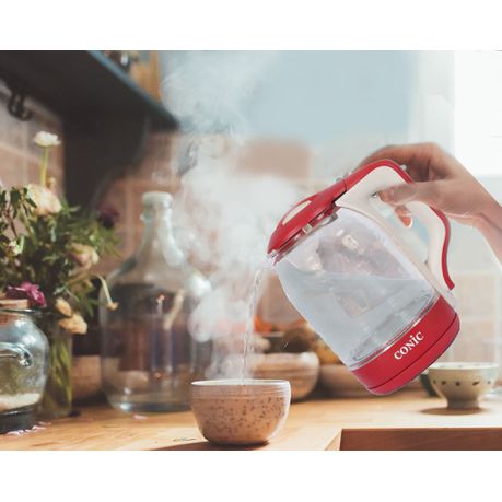 Conic 1.8l Glass Body Electric Kettle with Blue Indicator Light Base