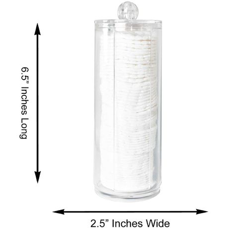 Simple and sleek stylish clear design matches any decor and provides a fashion forward trend for your daily morning beauty routine. A simple tube-shaped design provides the organization space you need to store all your cotton pads!