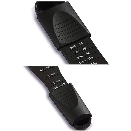 Simply slide the adjuster to your desired increment and scoop. A great item for all your kitchen cooking needs. Reduce kitchen drawer clutter by combining all ml's and grams measurements into one handy tool.