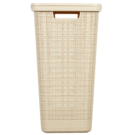 Made from 100% recycled plastic; ergonomic handles for easy carrying; inspired by handcrafted textiles.