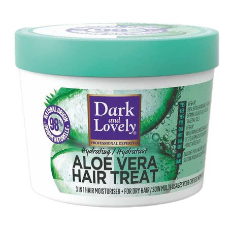 - Dark and Lovely Aloe Vera Hair Treat nourishes and moisturises dry hair.