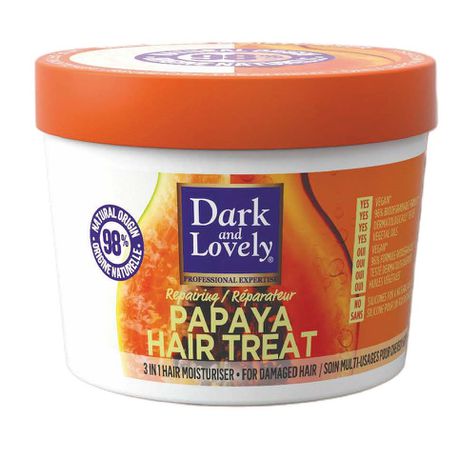 - Dark and Lovely Papaya Hair Treat nourishes and repairs damaged hair.