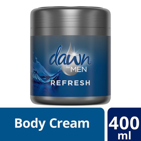Dawn For Men Refresh Body Cream 400 ml has a specially developed non-greasy formulae with glycerine and vitamins that is easily absorbed to give you great looking skin for 24-hours.;Tissue Oil, Glycerine and Vitamin A&E enriched.;Non-greasy skin cream for dry or normal skin type. Easy absorption and 24 hour fragrance.;A dry skin cream with a range of masculine fragrances.;Keeps you fresh and confident.;For all skin types.