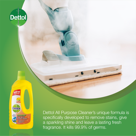 Dettol 4 in 1 Disinfectant Floor and All Purpose Cleaner's unique formula is specifically developed to remove stains, gives a sparkling shine and leave a lasting fresh fragrance.