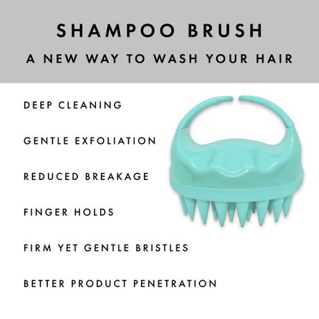 New and improved shampoo and scalp massage brush for use on wet or dry hair. Hair feels clean and light after washing. A salon-quality tool for use in your at-home haircare.
