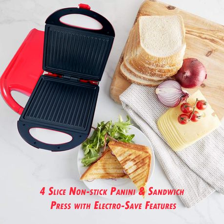 DH- 4 Slice Non-stick Panini & Sandwich Press with Electro-Save Features