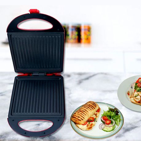 With a Red metallic housing and a heat resistant handle, this sandwich press has a slim and compact design for easy storage.