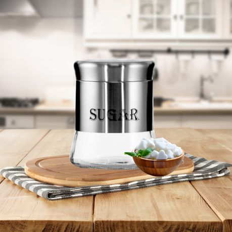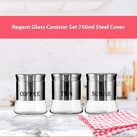 Beautiful Regent S/steel covered glass canisters - A stylish way to store coffee/tea/sugar on your counter for easy reach and minimal storage space.